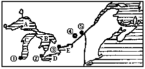 (2)图中的字母代表的湖泊名称是:A______________、B_____________、C___________、D_____________、E_____________。