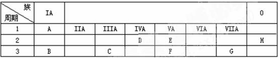 (2)根据A-H 元素在周期表中的位置,选用适当的分子式,填入有关的空白: