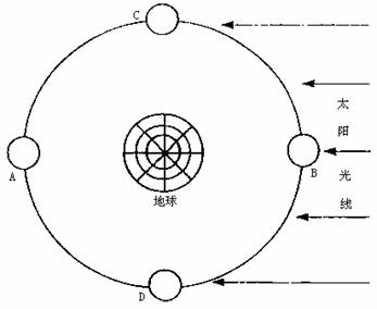 (2)当月球运行到图中 位置时,看不到月球的亮面,这一天是农历 。