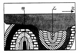 (1)甲处代表的地质构造是 ,乙处代表的是 。