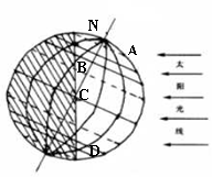 53.读“太阳光线照射地球示意图”,完成下列要求: (5分)