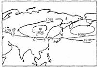读“亚欧大陆及太平洋海平面气压分布图”,回答24--25题