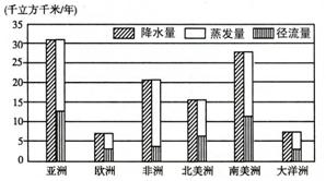 15.根据图A-04判断,水资源总量最多和最少的大洲分别是