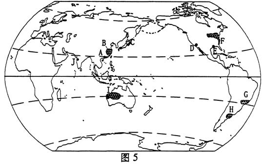 现代经济发展虽然对自然条件的依赖性有所减弱,但由于受产业传统和其它社会因素的影响,各国各地区仍表现出一些各具特色的经济地域类型。读图5回答下列问题(共10分、每空1分)