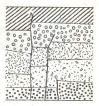 “地震真正的故事记录在岩石和土壤中”。地震是由地壳深处断屡的运动引起的,如果运动足够强烈,地表就会产生裂缝.数年后,沉积物又将裂缝覆盖。右图是“某地区地层剖面示意图”。读图回答15-16题。