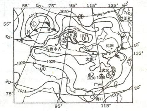26.下图为中国及周边地区2006年l2月22 日0时海平面等压线分布图,读图完成以下活