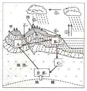 (3)地质构造看,甲处属于____________,而乙处则属于____________。其中甲处形成山岭的原因是_______________________________________________。(4分)