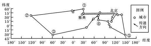 50.北京奥运会火炬将于2008年3月25日在雅典采集火种,4月1日从北京出发在全球传递,5月传回国内。读下图完成。北京时间2008年8月8日20时奥运会开幕,此时②地所在时区的区时为
