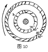 图10中箭头表示地球的自转方向, 表示气压带, 表示风带,完成17-18题。