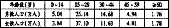 下表是我国第五次人口普查时“江苏省某迁入人口年龄及性别统计表”。据此回答22-23题: