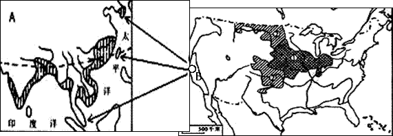 (1)A图中阴影区域表示的农业地域类型是 ,农业地域类型的生产特点