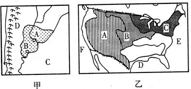(2) 乙图A地所属的农业地域类型是 ,发展该农业的社会优势区位条件 ;