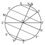 37. 下图上XOY为地轴,MN为赤道,EF、E′F′为回归线,ST、S′T′为极圈。读图回答。(11分)