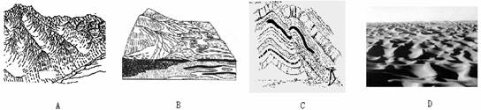 C.图中地表形态是内力作用的结果 D.图示区域表层沉积岩分布广泛
