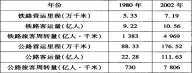 下列图表显示了我国陆路交通的部分数据。据此回答9一10题。