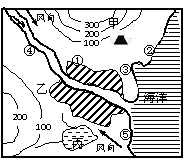 (2)计划在①--⑤处分别建化肥厂、罐头加工厂、石油输出港、自来水厂、疗养院,试为其选择较为合理的区位,并说明理由。(15分)