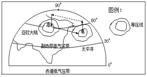 下图为“亚欧大陆东部某季节大气运动”图,读图回答8-10题。
