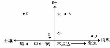 (2)图中可能分布在中亚地区的植物形态有 _____ 和 ______ ,判断的依据是:中亚地区气候 ,土壤多呈 ___ 性反应,植物叶子 _ ___ 而根系 ___ 。