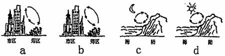 25.下面4幅示意图中,能正确反映城郊之间.海陆之间热力环流的是