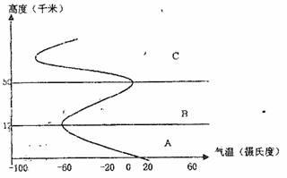 (2)、A层大气温度随高度升高而 (升高或降低),原因是