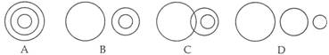 4、下列各图中的大中小圆分别表示河外星系、太阳系、地月系,其中能正确表示它们三者之间关系的是 ( )