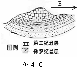 图4-6为一典型褶曲剖面,读图回答3--4题.