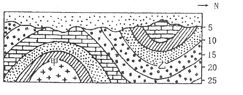 33. 读“某地的地质剖面图”,试着当一位地质工程师,对下面的问题作简要的分析说明。(8分)