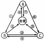 34.读下图“三大类岩石循环示意图”,回答(4分):