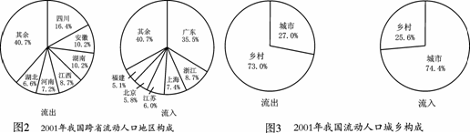 人口迁移和城市化是人类社会发展历程中的重要现象。近年我国流动人口逐渐增加,2001年我国流动人口超过1.2亿。读图2和图3并回答12-13题。