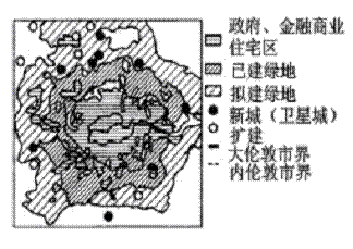 读”伦敦的城市规划和布局”示意图,回答20-21题: