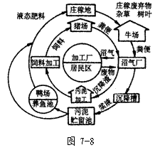 7、图7-8是我国南方低山丘陵区某地“生态农业模式图”,读图回答下列问题: