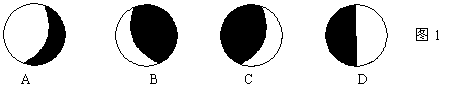 白居易诗句中“可怜九月初三夜,露是珍珠月如弓”,描写的月相与下列图1中月相最相吻合的是: