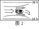 32、一条河流沿北纬350度自西向东流,河中有一沙坝(图2),下列叙述及关联正确的是: