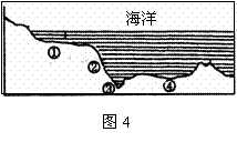 34、读海底地形图(图4)分析,下列叙述正确的是: