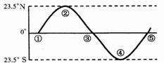 右图是太阳直射点在地球表面移动示意图,下列叙
