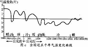 ①我国目前正处于冷暖交替过程中的寒冷期 ②我国目前正处于冷暖交替过程中的温暖期 ③近五千年来,我国气温波动值在2℃以内 ④近三十年,大气中二氧化碳的体积分数与气温变化趋势大体相近