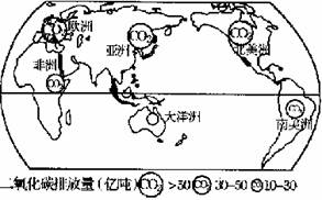 (1)图中二氧化碳排放量最多的三个大洲是______、______、______。