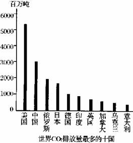6.读“世界各大洲工业二氧化碳排放示意图”、“世界二氧化碳排放量最多的十国柱状图”及有关资料,回答: