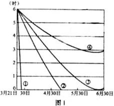 图2四条曲线分别示意四地3月21日到6月30日的日出时间。读1,回答4-6题。