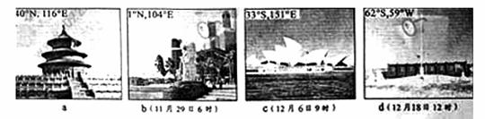 我国科学家从a地出发到b、c、d三地考察(图中标注的是经纬度位置和抵达时的北京时间)。读图3回答7-8题。