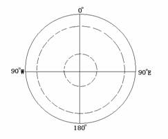 [例6]如图是以南极为中心的俯视图,阴影部分为9月24日,空白部分为9月25日。