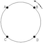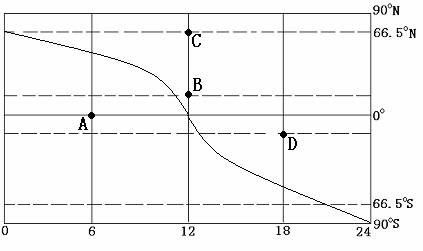 (2004年北京朝阳区模拟题)假设下图表示纬线圈,A、B、C、D四点将纬线圈平分为四段弧,其中AB为夜弧,其余各弧为昼弧,据此回答6-7题。
