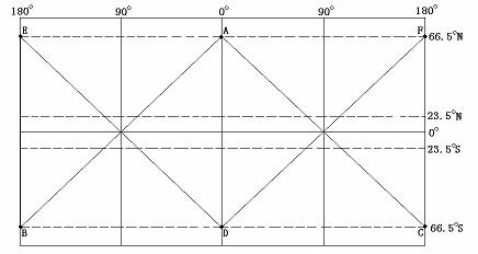 (1)若AB为晨线,日期为 月 日前后,太阳直射点的坐标为 。