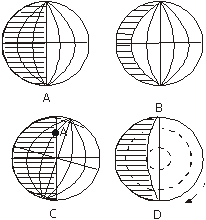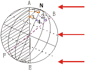在区时计算时 , 经常是已知光照图却没有在题干中明确指出某点(或某经度)的时间。这种情况下要用光照图中隐含的时间进行计算。这种时间的隐含一般有下述几种情况。