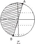 ⑤若光照图是侧视图如图乙,则A点所在经线是l2点,B点所在经线是24点。