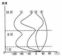 (1)图中正确表示大气层气温垂直变化的曲线是: ( )