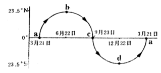 23.图是一年中太阳直射点移动的纬度变化示意图,用图中字母填空解答: