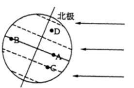 (4)再过三个月,北半球的节气是 ,B点的太阳高度角为 度,D点正值 (黎明还是黄昏)。
