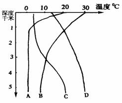 19.下图能正确表示海水温度垂直变化的曲线是:( )