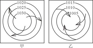 (3)受图 (甲、乙)天气系统控制的地区,多晴朗天气;受图 (甲、乙)天气系统控制的地区,往往出现阴雨天气。